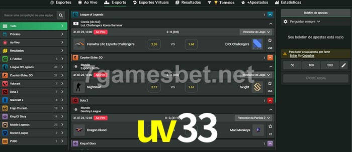 O uv33 oferece uma grande seleção de opções de apostas em e-sports com probabilidades competitivas